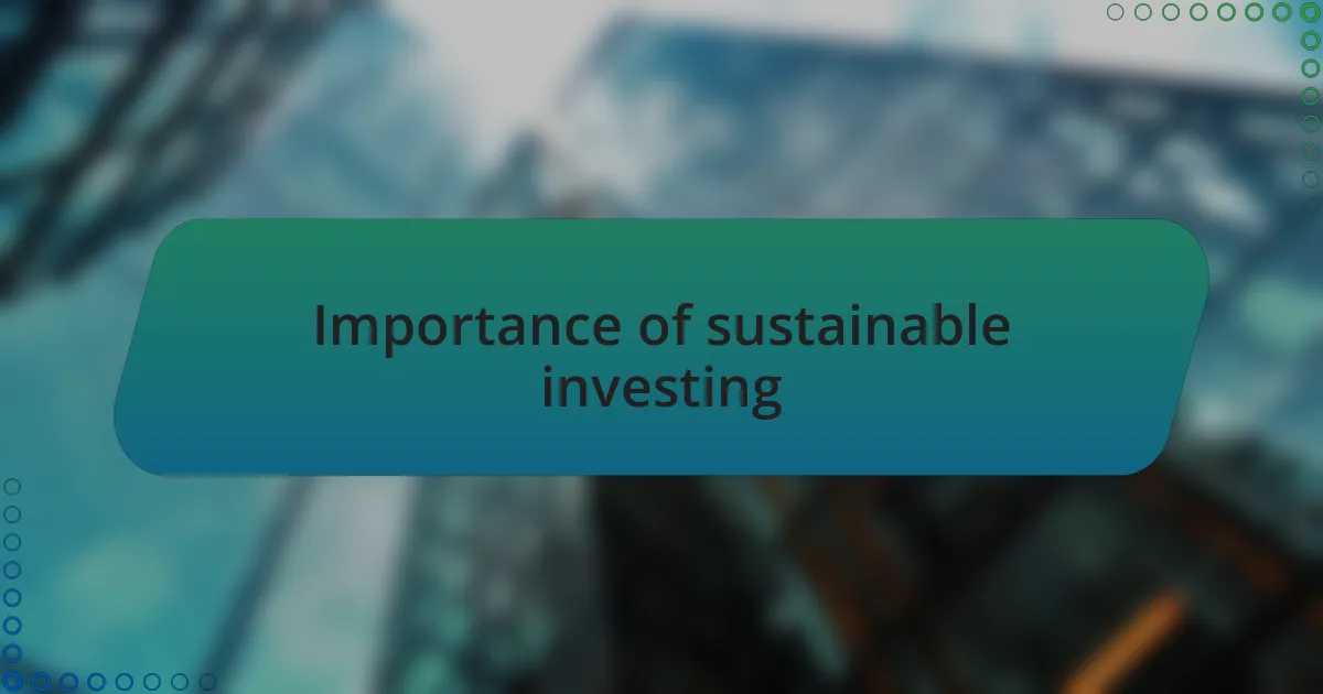 Sustainable investing serves as a bridge between personal values and financial growth. I vividly recall a conversation I had with a fellow investor who felt a deep sense of pride when her portfolio began to reflect her commitment to sustainability. It made me realize that sustainable investing isn’t just a financial strategy; it can enhance our emotional well-being by allowing us to support causes we care about. Isn’t it rewarding to know that we can financially back a greener planet?
